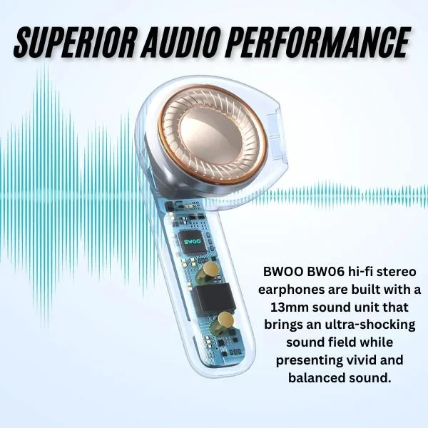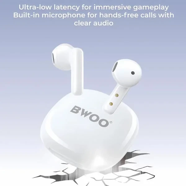 BWOO BW-06 Mini Wireless Bluetooth Earphone | TWS Gaming Earbuds with BT 5.3 White