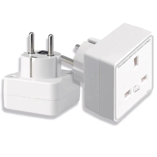 European Travel Adaptor Plug with UK Safety Standards | Double UK to EU Plug Adapter