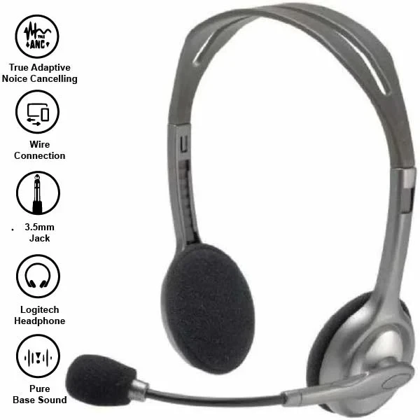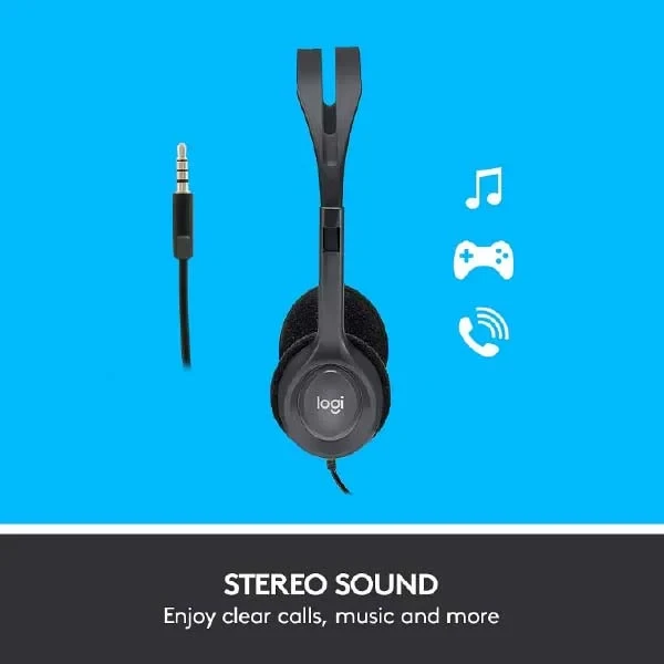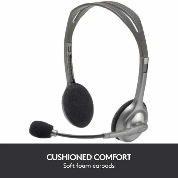 Logitech H111 Wired Headset, Stereo Headphones with Noise-Cancelling Microphone Grey